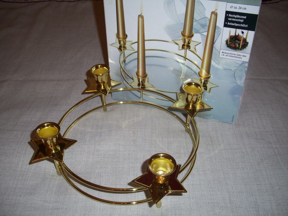 Novi TCM svijećnjak za 4 uske konusne svijeće, još zapakiran, s kutijom; mesing.
