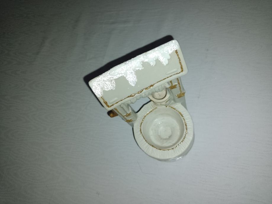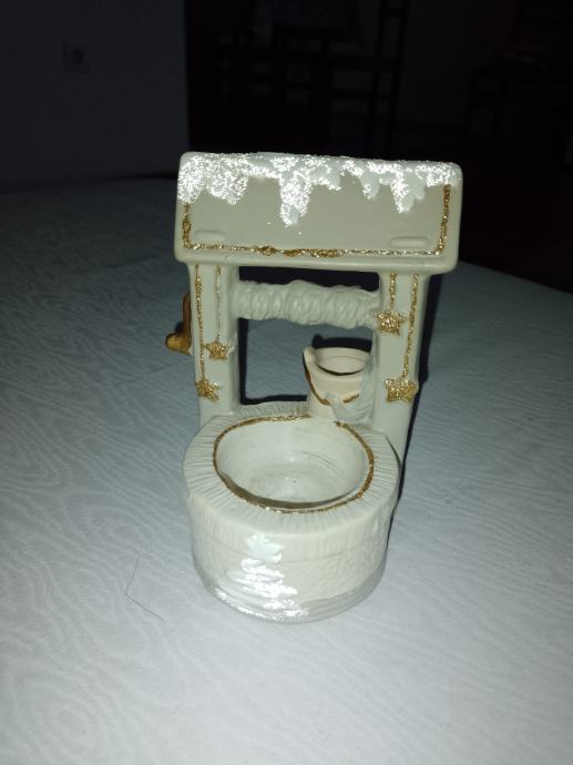 Keramika. Može služiti kao svijećnjak za lučice, ali i kao ukras. Visina 12 cm.