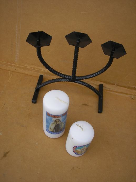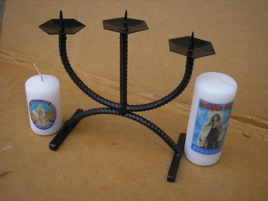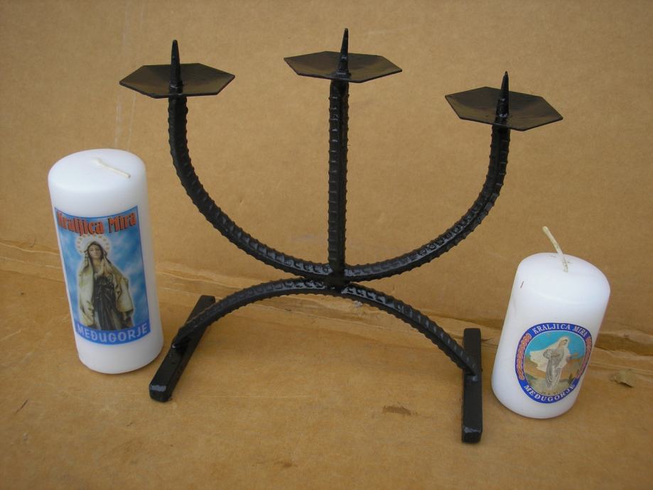 SVIJEĆNJAK metalni trozub + 2 svijeće motiv Međugorja NOVO