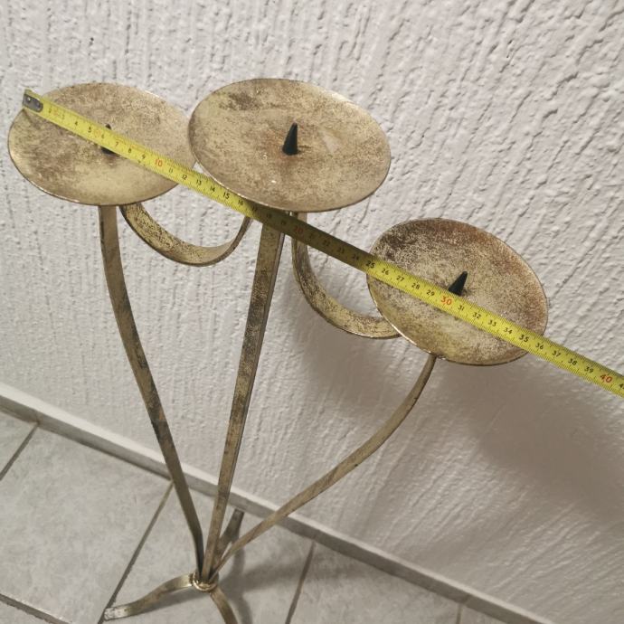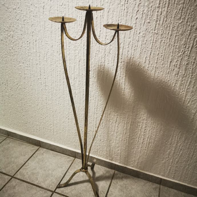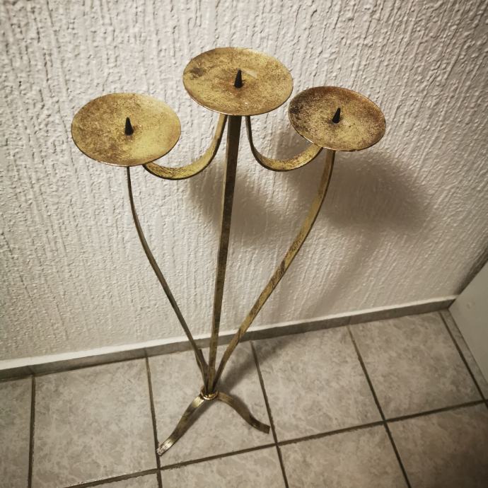 Pozlaćeni veliki svijećnjak za tri svijeće.