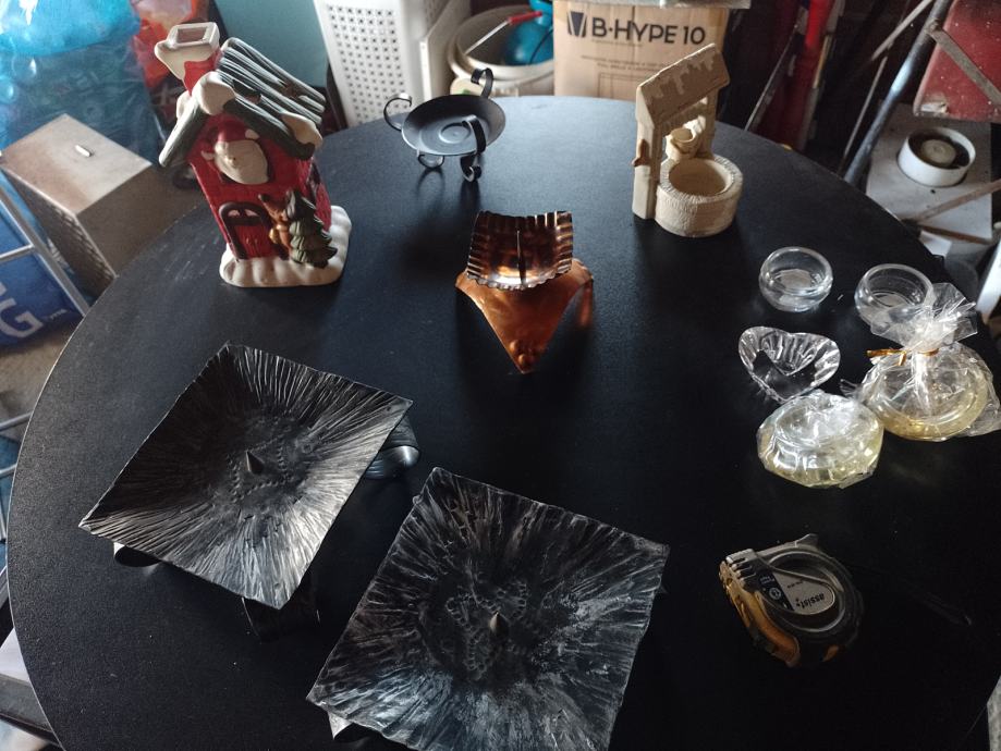 Ovaj keramički bunar, visina 13 cm je 3 eura, i ova dva četvrtasta metalna (15 x 15 cm) su oba za 5 eura.