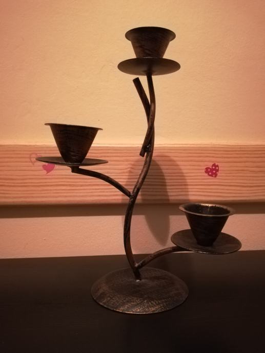 Predivan METALNI SVIJEĆNJAK za 3 svijeće.