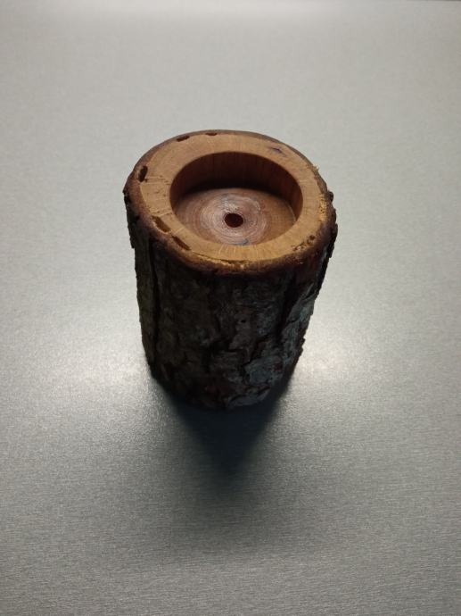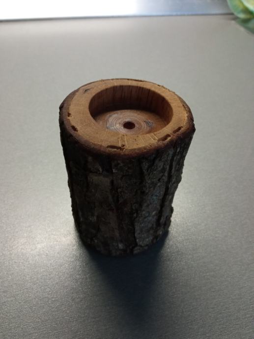 Prodajem rustikalni svijećnjak za lučicu, dimenzije svijećnjaka, visina cca. 75 mm, promjer cca. 60 mm, promjer rupe za lučicu je 35 mm, hrastovina. Čeone površine zaštićene lanenim uljem.