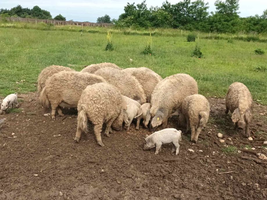 Ujedno se prodaje i 12 odraslih mangulica starosti oko godinu i pola, težine 80-150kg. Može pojedinačna prodaja po komadu.
