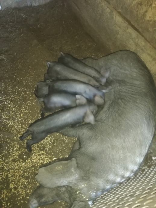 Eko uzgoj crnih Slavonskih svinja. Prodajem prasce težine između 12 i 25 kg