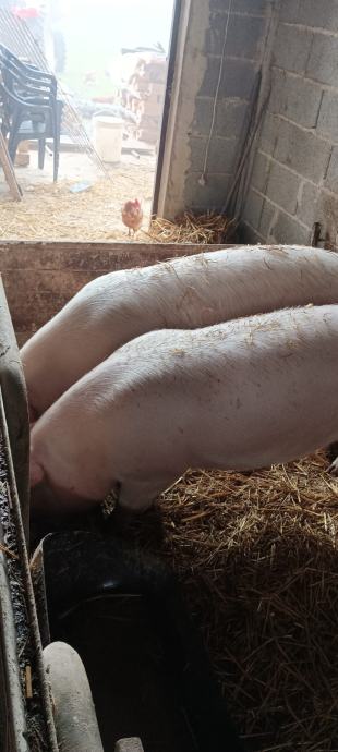 Prodajem domaće svinje, težine od 140kg i 220kg. Žive vage po 3€/kg ili polovice po 4€/kg.