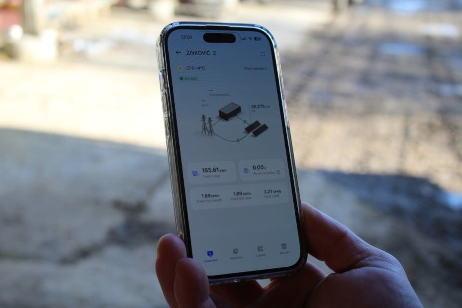 Proizvodnju električne energije možete pratiti na led display-u invertera, na računu kojega dobijete od opskrbljivača ili pak na najlakši način - preko aplikacije. "Danas većina invertera imaju mogućnost spajanja na Android i iOS aplikaciju na kojoj se vidi potrošnja, naponi u stringu, kolika je struja, grafovi napona, proizvodnja i sl.", nabraja.