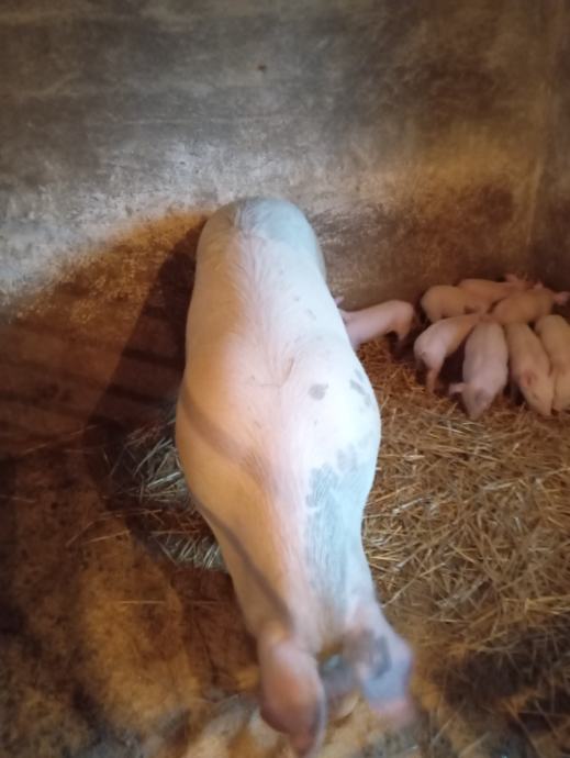 Prodajem krmaču sa 10 zdravih odojaka. Krmači su to drugi odojci stari dva tjedna.Cjena 1250€ informacije 091-897-6052