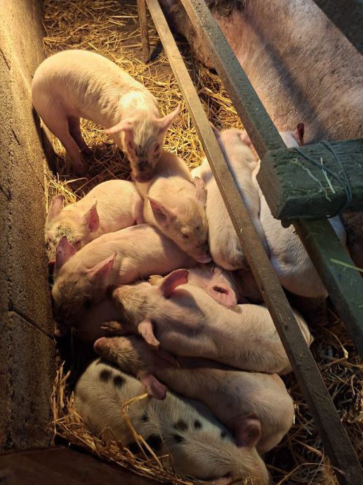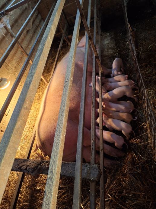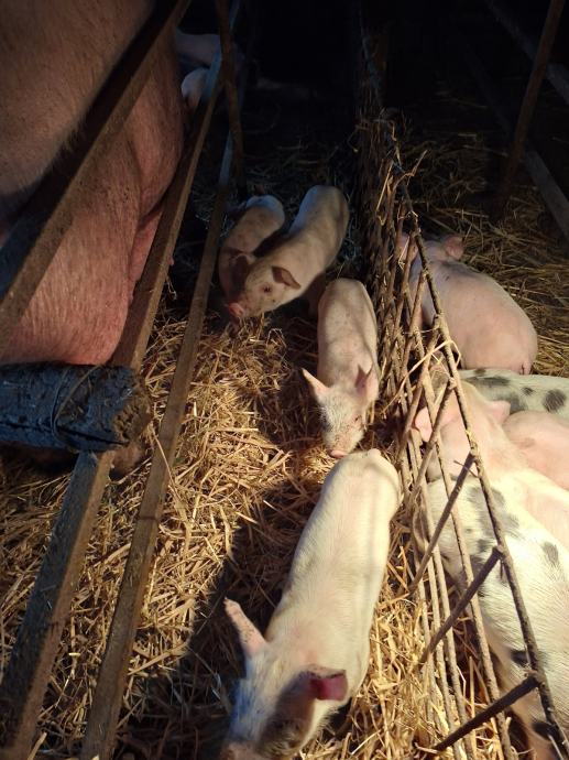 Dvije krmače sa odojcima. Drugo prašenje jedna ima 12 kom a druga 10 kom. Prašene 4.11. Praščić cijepljeni i oštrojeni.