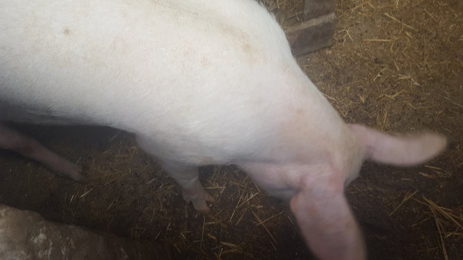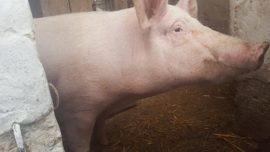 Prodajem mlađu krmaču, jednom se oprasila. Hranjena domaćom hranom. Cijena je 11kn/kg, može i dogovor.