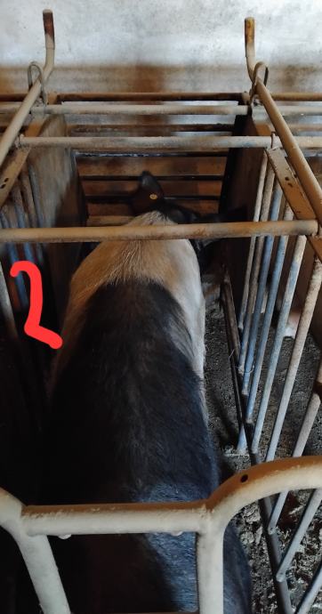 Krmače suprasne. Jedna hemsir, jedna landras, ostale mix landras-durok.( pripuštene pod landrasa). Težine krmača cca 150-180 kg.