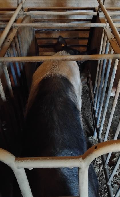 Krmače suprasne. Jedna hemsir, ostale dvije mix landras-durok.( pripuštene pod landrasa). Težine krmača cca 150-160 kg.