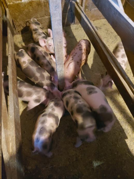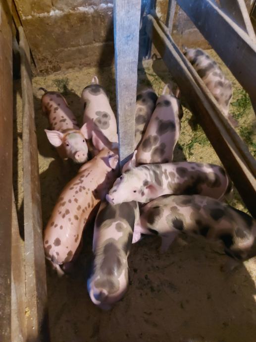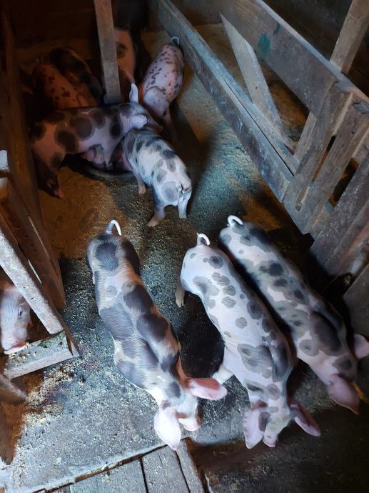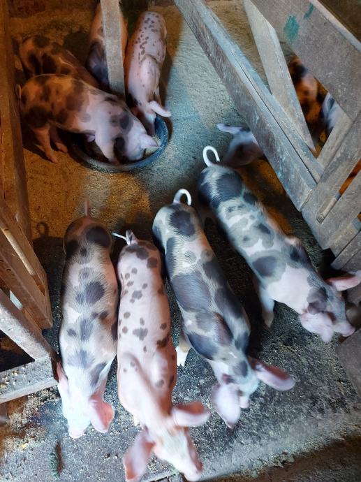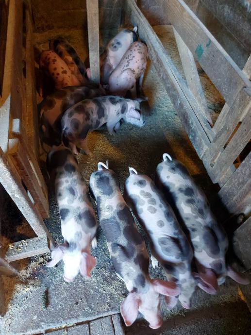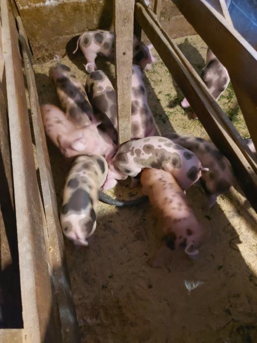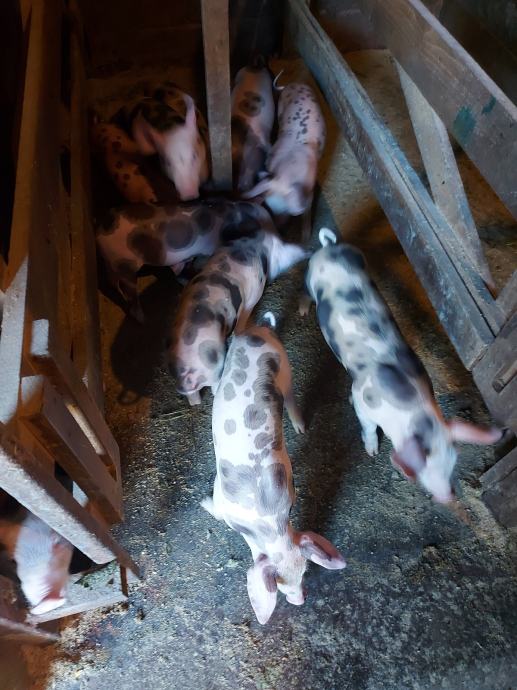 Prodajem 9 odojaka za dohranu,piatren durok,jedu samostalno,stari 40 dana,cijena 60e komad u kompletu,moze i pojedinacno,0915591028