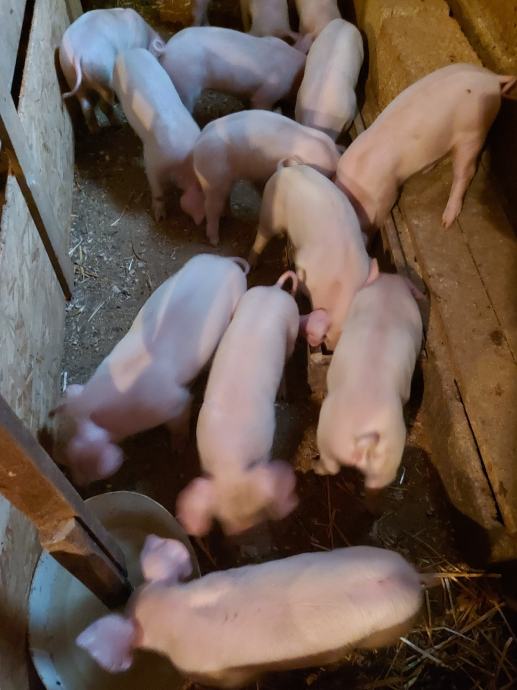 Prodajem 7 odojaka za dohranu,landras,odbijeni,jedu,cijena 85e po komadu,moze pojedinacno onda cijena dogovor,0915591028