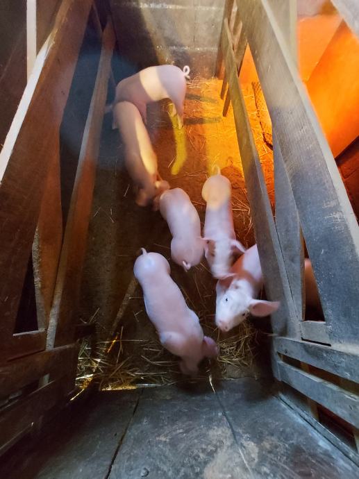 Prodajem 5 odojaka za dohranu,stari 5 tjedana jedu sami,cijena 85e po komadu,0915591028