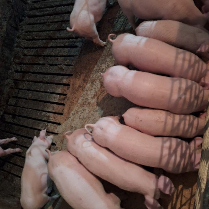 Prodajem odojke landras od 20 do 30 kg težine po izboru po 5 eu za kg i jednog muškog oko 70 kg težine. Može i pojedinačno uz obradu po dogovoru. Inf. 099 2543098