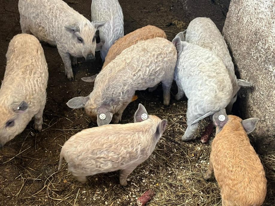 Prodaju se svinje mangulice težine između 40-60kg.Svinje su cijelo vrijeme vani na otvorenom i u eko uzgoju.