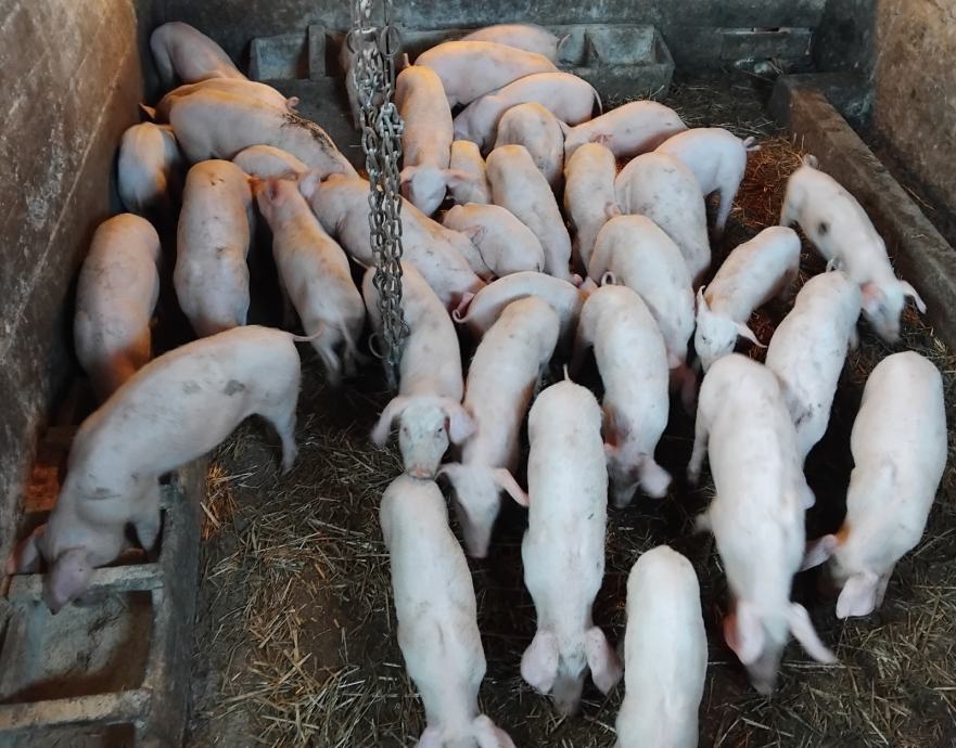 Odojci odbijanci domači uzgoj 70 komada, pola m/ž ( muški nisu kastrirani). Mix landras-durok.