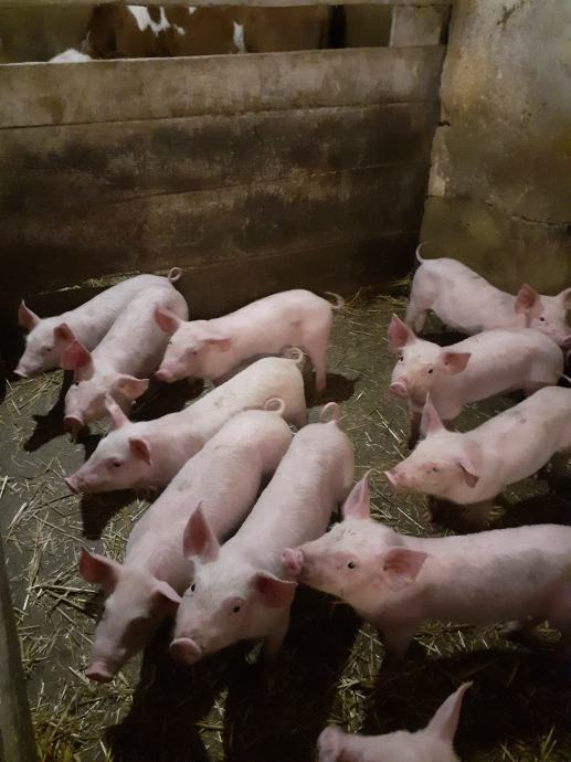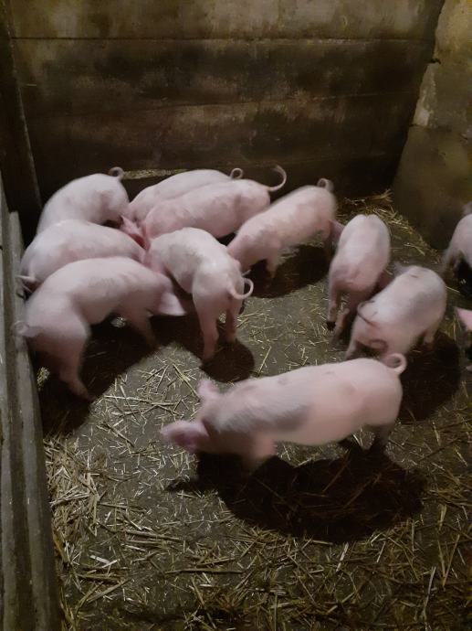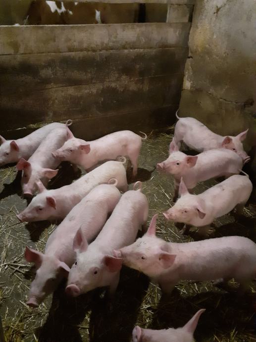 Prodajem 12 odojaka za dohranu, odbijeni,samostalni,landras pasmine, cijena 90€/kom.