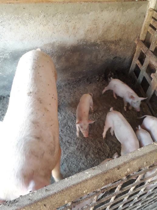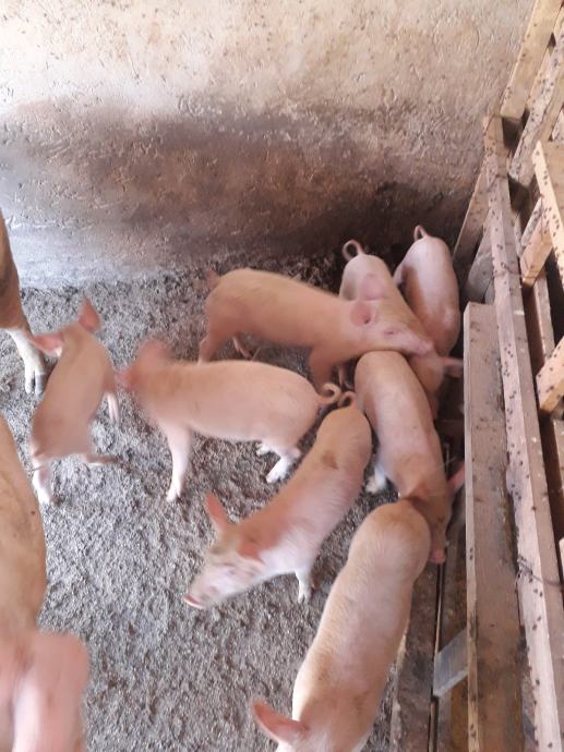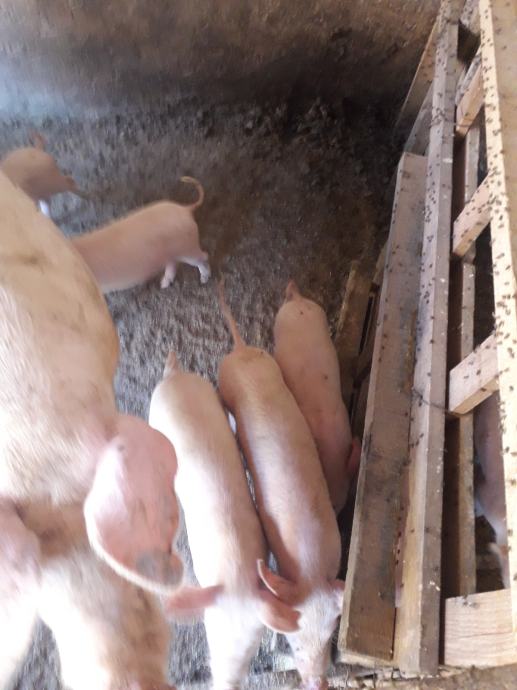 Prodajem 9 odojaka za dohranu odbijanci 2 muških 7 ženska starih 6 tjedana ne uštrojenih prodajem samo u kompletu 300 kuna komad čistokrvni njemački landras 0989652330