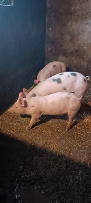 prodajem tri muska odojka oko 30 kg.odlicni za dalnji tov domaci sve jedu.!!