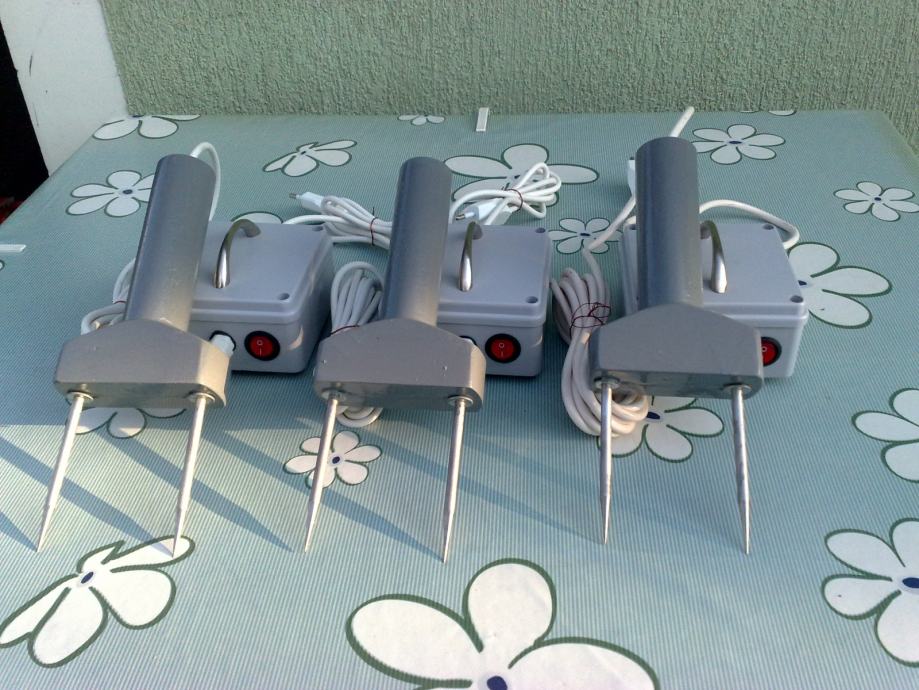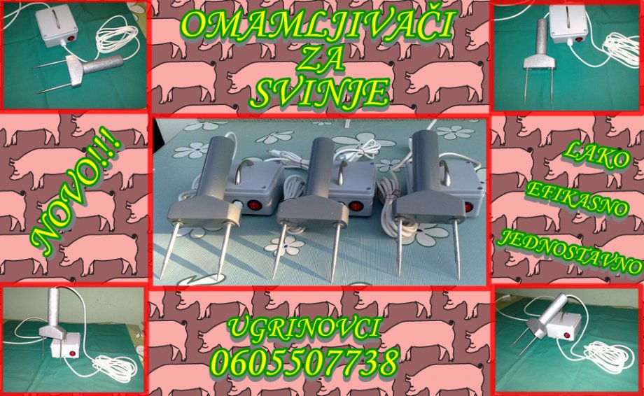 Više nećete morati da se borite sa svinjom dok je koljete bez obzira na njenu težinu. Odlučite gde vam je najpogodnije mesto da svinja iskrvari. Ubodete viljušku u vrat na 5 - 10 cm iza ušiju. U tom momentu svinja se ukoči i pada. Viljušku ispuštate iz ruke, to jest ostavljate je celu u vratu! U vrlo malo slučajeva se dešava da svinja zauzme takav položaj da ne može da padne. U tom slučaju sami je oborite. Obratite pažnju da se ne omogući izvlačenje viljuške zapinjanjem o neki predmet prilikom pada. Sav ovaj posao radite golim rukama i svinju slobodno dirate po telu ne samo vi, nego i drugi ako pomažu pri klanju, bez ikakve bojazni da će vas struja prodrmati. Aparat nema ulogu da ubije ili da šokira svinju, već samo da je obori i drži u prilično mirnom stanju dok se obavi proces klanja. Neka vam malo trzanja zadnjih nogu ne smeta jer to pomaže da svinja dobro iskrvari. Kad ocenite da je svinja dovoljno iskrvarila, viljušku izvadite, aparat isključite iz struje. UGRINOVCI. Pozvati na broj +381605507738 ili na WhatsApp ili na Viber