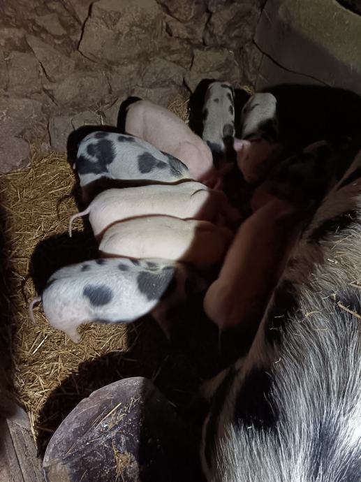 Vrhunska sorta banijska šara njemački landras dugački, 8 muških nisu škopljeni još, jedu svu hranu domaću odlično, vlastiti uzgoj nije šverc, u kompletu svih 8 za 1200 eura, može i na manje komada i biranje cjena 150 eura komad, molim samo ozbiljne pozive bez zamjena i filozofiranja ozbiljni kupci dobrodošli, može i bez papira, Krnjak 098 962 4225!!!
