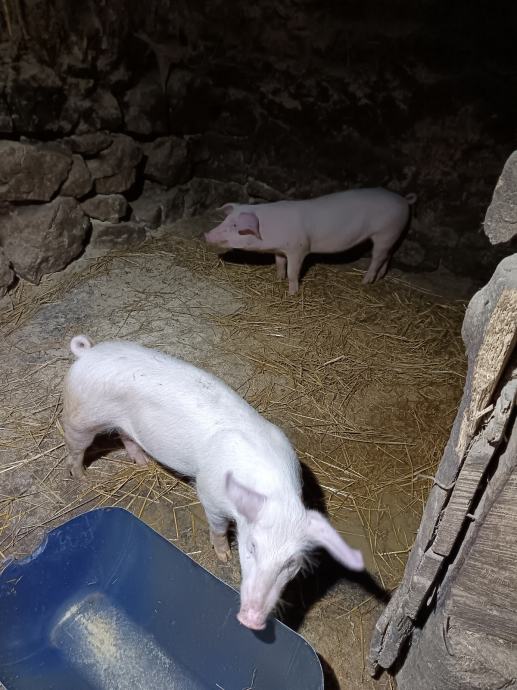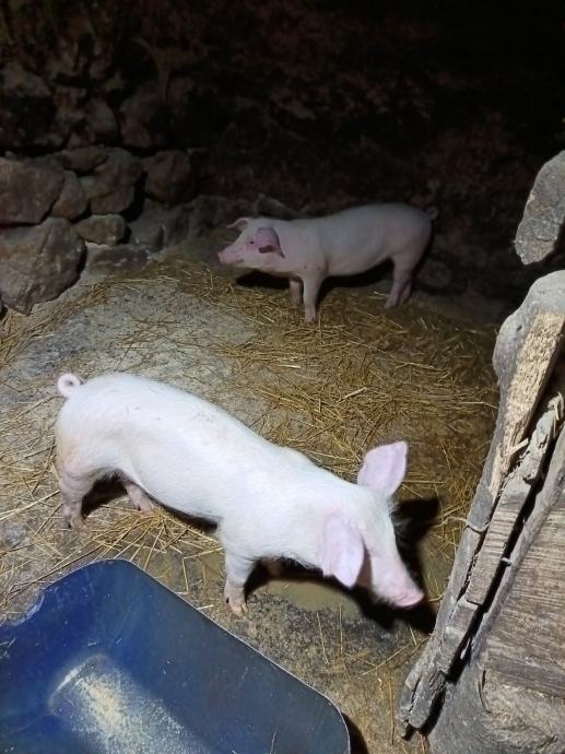 Prasci vlastiti uzgoj landras dugački, 5 mj stari, jedno žensko, drugi muški nerastić, vrhunski za mladog nerasta za rasplod ostaviti, i ženska za krmaču , cjena u kompletu 850 eura, može prijevoz u bližoj okolici , molim samo ozbiljne pozive bez zamjena , ostalo dogovor Krnjak 098 962 4225!!