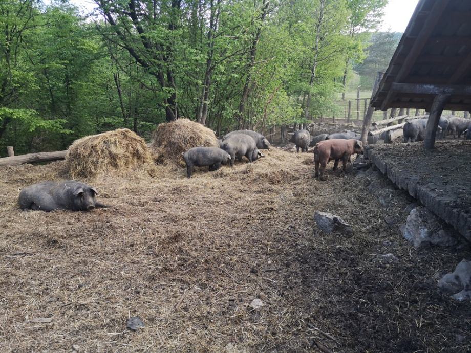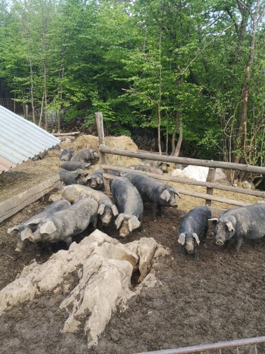 Prodajem bređe krmače crne slavonske svinje parene sa nerastom čistokrvnog duroka.