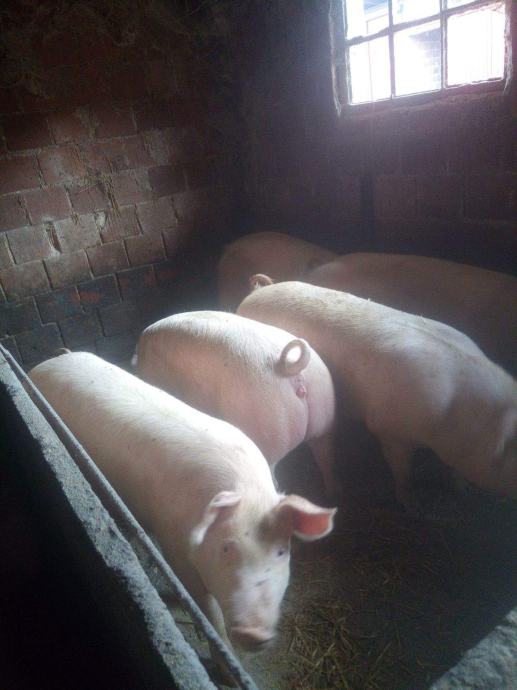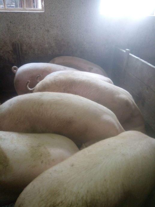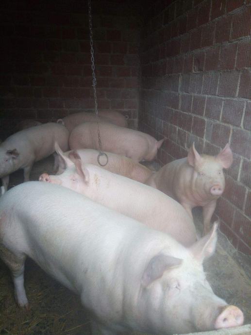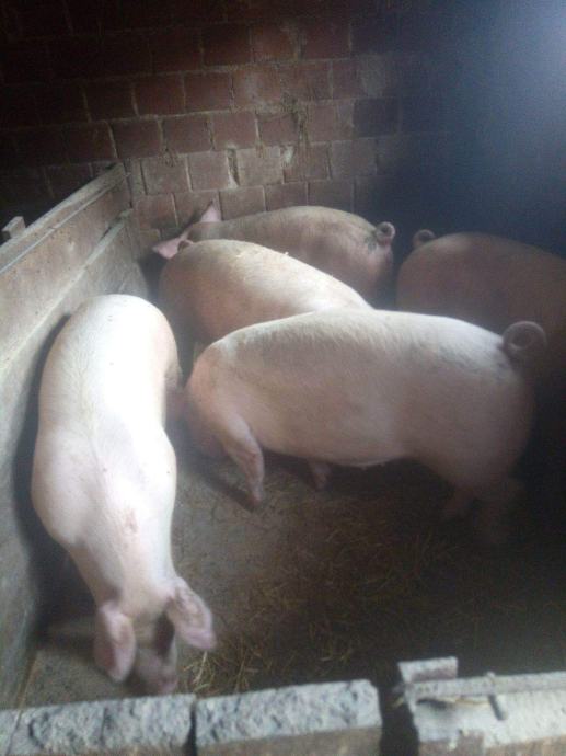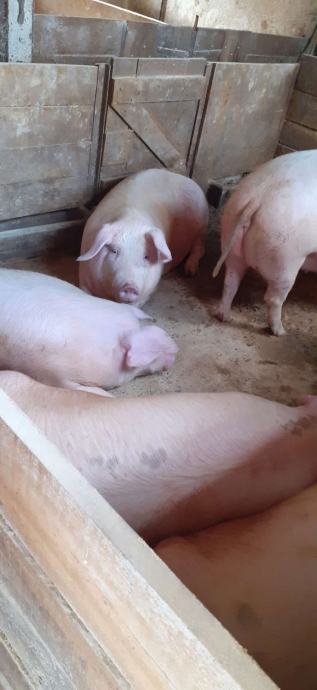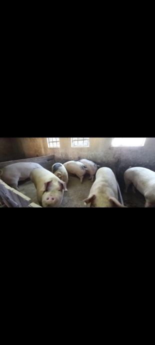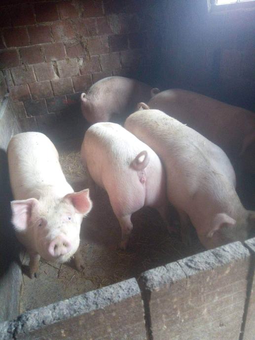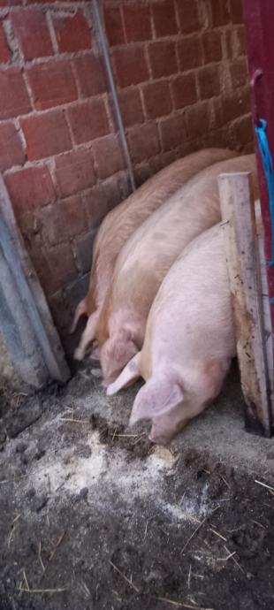Prodajem svinje težine od 200 do 250 kg.,pasmine Landras -Durok ,više komada- 60 svinja, cijena za kilogram, 2,30 eura, odlićne kvalitete,hranjene domaćom hranom ,moguća obrada u klaonici u Vrbovcu. Upitati na br. mobitela, 091/3061634 .