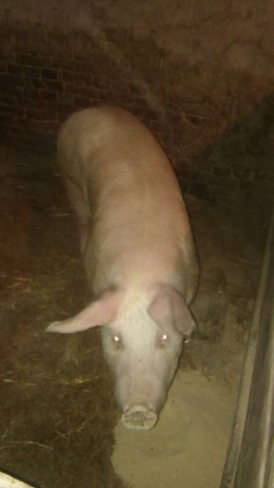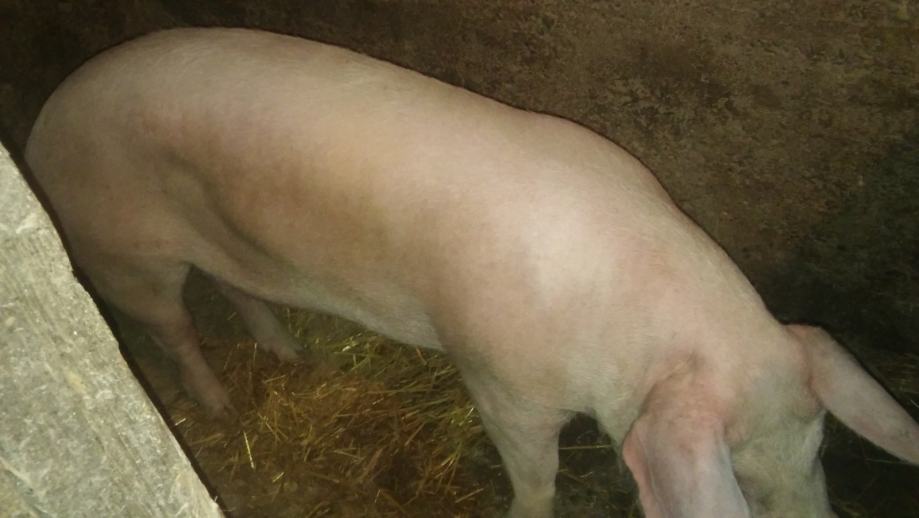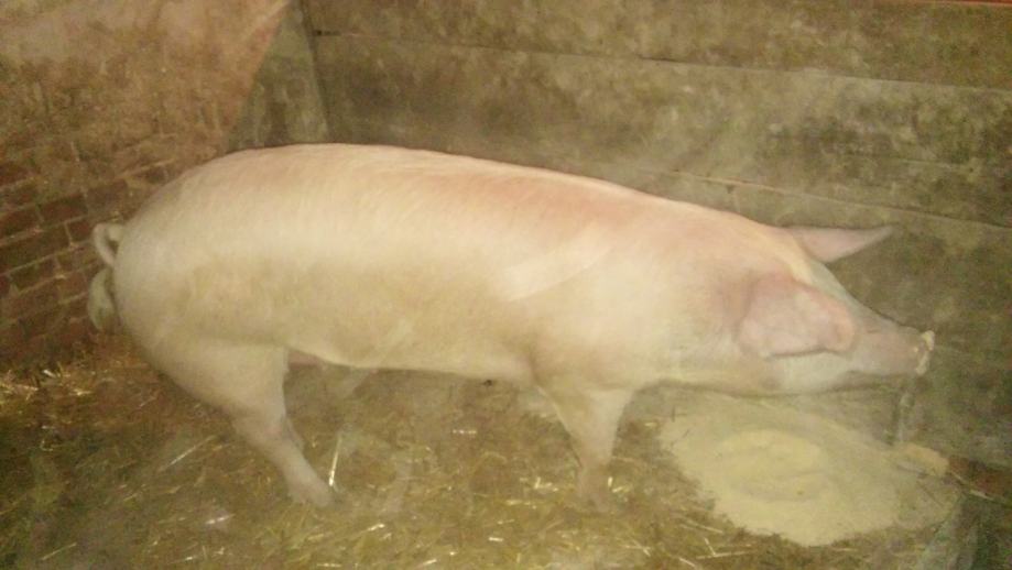 SVINJA JE PASMINE LANDRAS,BIJELA,DUGAČKA I MESNATA.