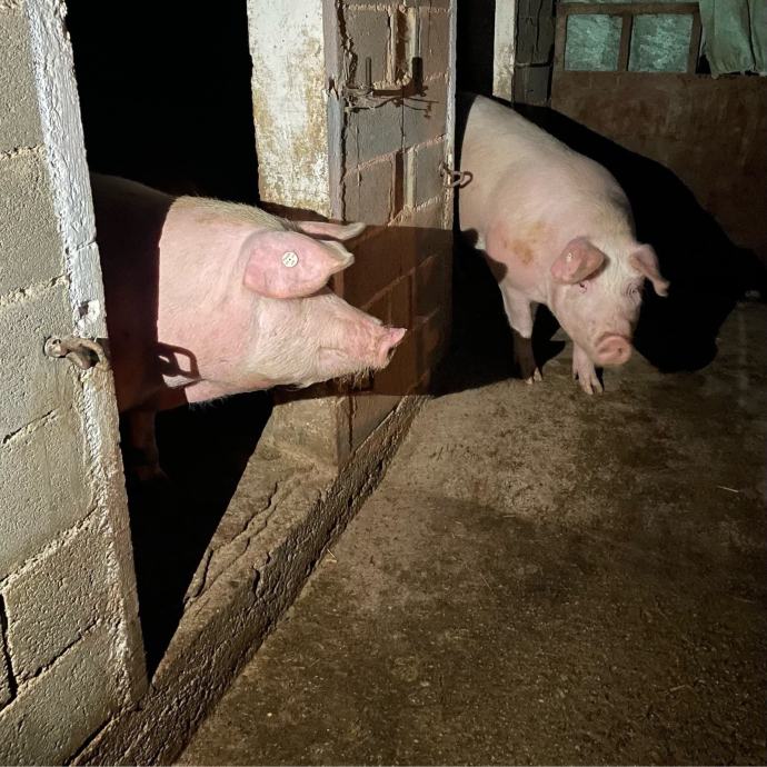Domaće svinje , hranjene bez koncentrata , “kuhani kotal” , kukuruz , ječam , pšenica , zelena trava , težine 200-215 kg