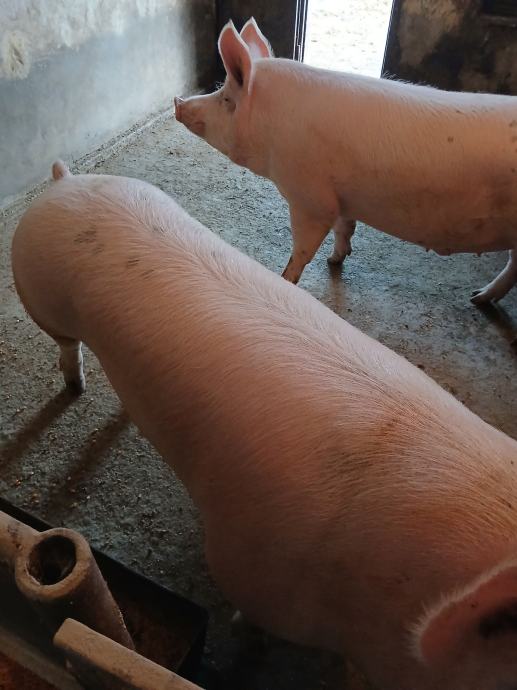Prodaju se dvije velike svinje oko 240 kg težine, stare jednu godinu, hranjene domaćom hranom bez koncentrata i smjesa. Idealne su za izradu kobasica i drugih suhomesnatih proizvoda. Svinje su uzgojene za vlastite potrebe, borave u zidanom objektu u koji nemogu ulaziti glodavci (štakori i miševi). Po dogovoru, mogućnost obrade u polovice.