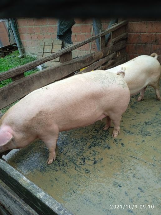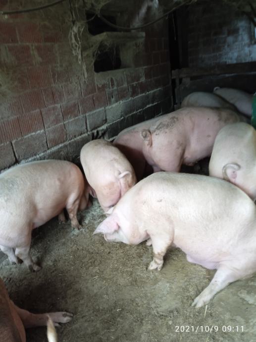 Prodajem svinje težine 180 do 300 kilograma, prodajem i dvije mlade krmače. Sve pasmine njemački landras. Cijena 2,00 eura, bijeli, izrazito mesnati, domaći uzgoj..