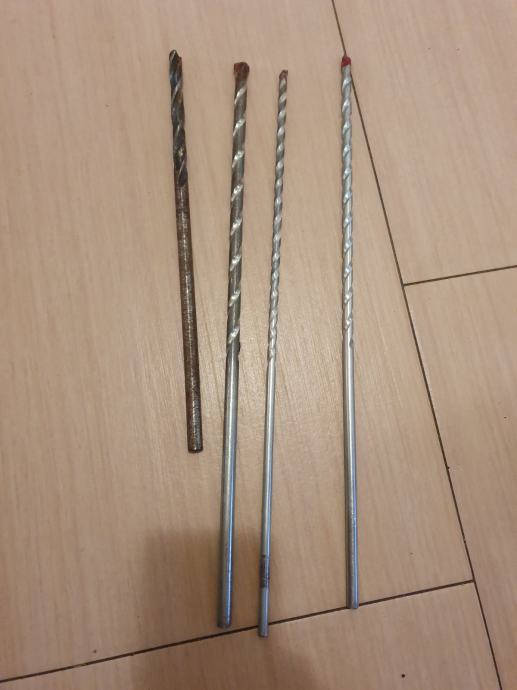Boreri za busilicu sa steznom glavom. Promjera 8,10 i 12mm. I jedan za drvo od 14mm, taj je jednom korišten za probusit dve rupe. Novi zapakirani, stajali su u koferu sa alatom pa ne izgledaju ko novi, ali nisu koristeni.