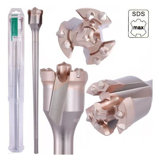 Probijač - Idealan za izradu rupa u betonu, prirodnom kamenu i zidu. 3 spirale velikog volumena osiguravaju brzo uklanjanje prašine od bušenja i brz napredak bušenja. Promjer: 55 mm Radna duljina: 410 mm Vrsta bušilice: Udarna bušilica Ukupna duljina: 550 mm Vrsta drške: SDS-max Materijal (svrdlo): vrh od karbida