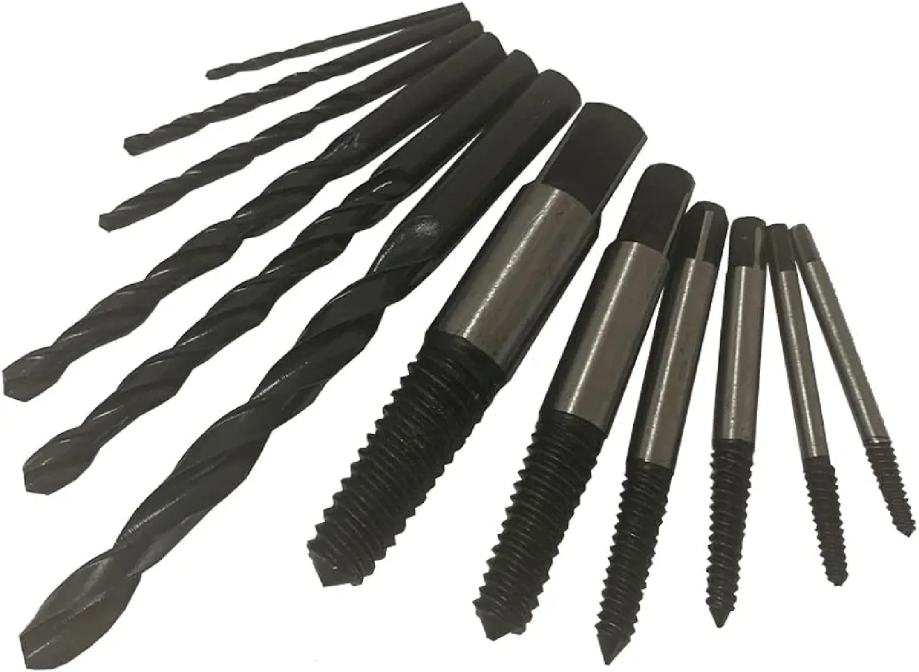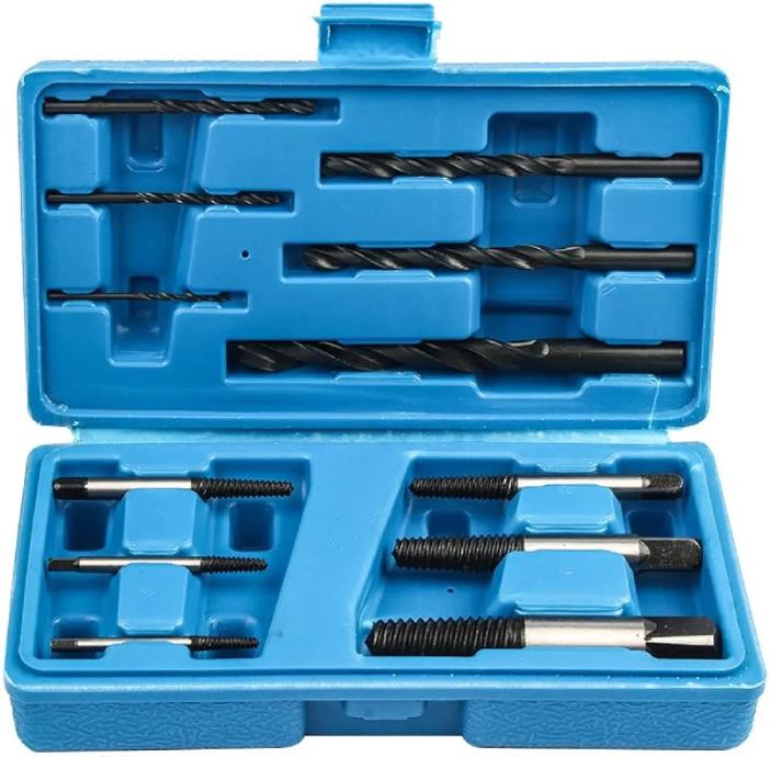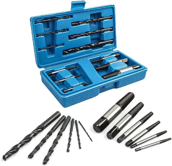 Ovaj pribor za izvlačenje oštećenih vijaka koristi se za uklanjanje većine vrsta oštećenih, zahrđalih, slomljenih ili zaglavljenih vijaka s bilo koje drvene ili metalne površine