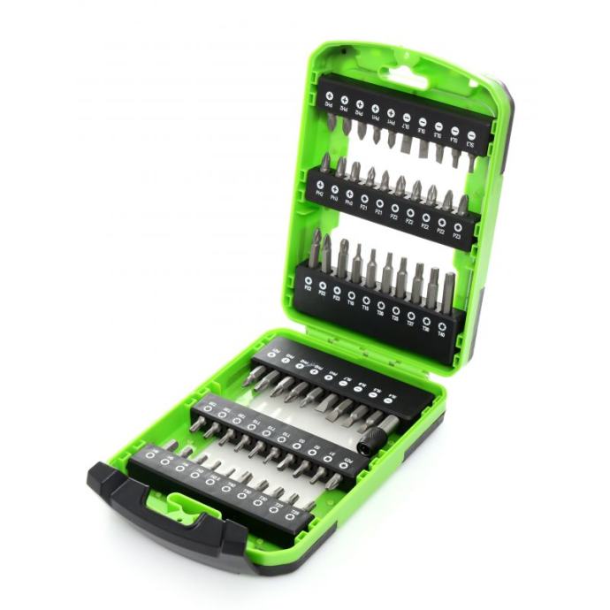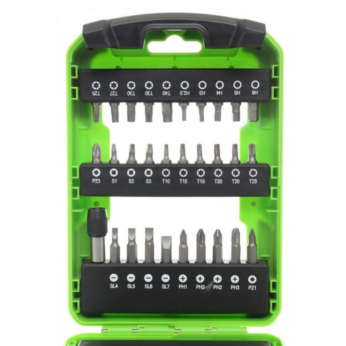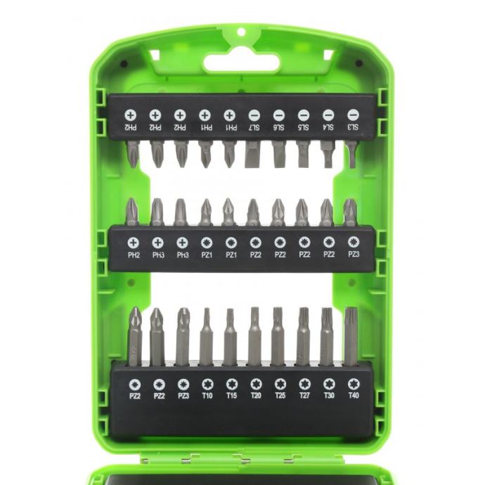 Profesionalni set bitova raznih veličina. Zbog svoje trajnosti, pouzdanosti, preciznosti izrade, visokokvalitetnih materijala, modernih građevinskih rješenja i drugih prednosti zasigurno će zadovoljiti zahtjevne korisnike. Cjelina je zatvorena u prikladnom paketu koji omogućava brzi pregled dostupnih alata.