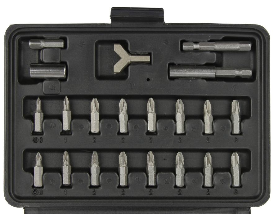 Kvalitetan set bitova neophodna je oprema za svaku radionicu i garažu. Zahvaljujući odgovarajućem odabiru elemenata kompleta, iznimno je univerzalan. Korištenje odgovarajućih materijala osigurava visoku čvrstoću i trajnost. Sve je zatvoreno u plastičnom koferu.