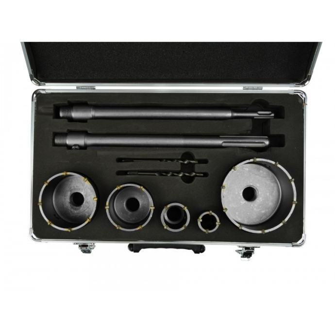 Set kruna za beton i ciglu 9 el. - 30,40,65,80,100mm + 2 adapterja 1 x adapter SDS plus 1 x adapter SDS Max