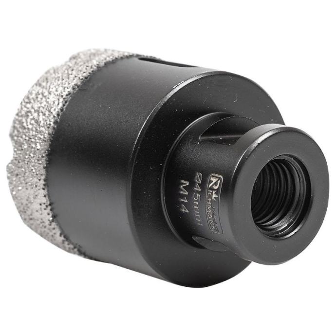 veličina: 45mmradna dužina 40 mmukupna dužina 60 mmnavoj M14radna brzina: 10000-14000 o/minopremljen ručkom s navojem M14 za izravnu montažu na kutnu bušilicunamijenjen za bušenje rupa, između ostalog u kamenoj, porculanskoj, keramici, crijepu, prirodnom kamenu, granitu i mramorusvrdlo pakirana u plastičnu cijev s rupom za vješanje na nosač tj kukumaksimalna radna brzina je 14.000 o/minbočne rupe omogućuju bolje hlađenje i omogućuju uklanjanje krhotina nakon bušenja svake rupetrajnost svrdla za rupe ovisi o vrsti materijala koji se obrađuje, njegovoj debljini te odgovarajućem hlađenju i uporabi.kako bi se produžio njegov vijek trajanja, potrebno je pridržavati se sljedećih pravila:koristi se s uređajima koji osiguravaju odgovarajuću radnu brzinusvrdlo za suhe rupe, stoga NEMOJTE koristiti vodu kao rashladno sredstvopočnite bušiti rupe postavljanjem krunice pod kutom od oko 30 stupnjeva u odnosu na materijal koji se obrađuje i zatim kružnim pokretimakao što je prikazano na ilustrativnoj fotografiji u galerijiprije svakog sljedećeg bušenja provjerite i očistite središte krunicetežina s pakiranjem: 187 g]]>