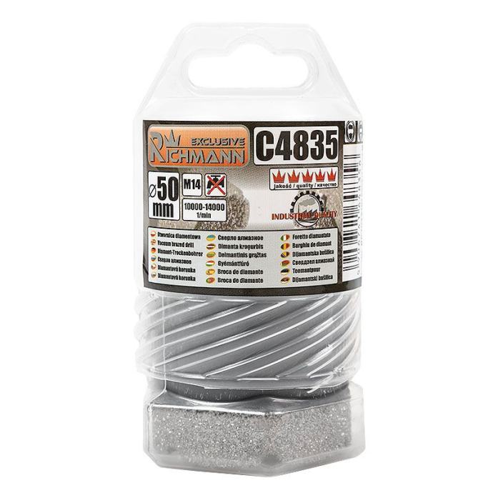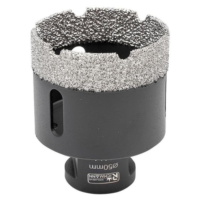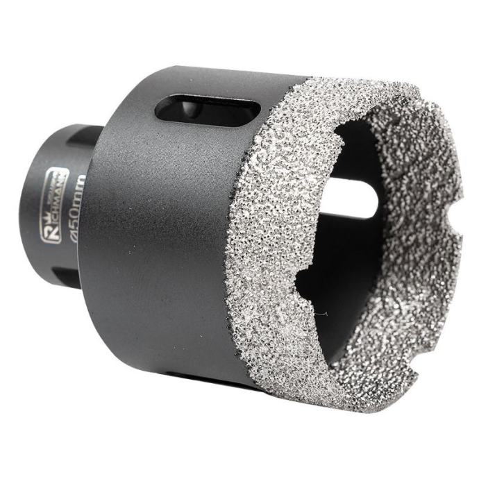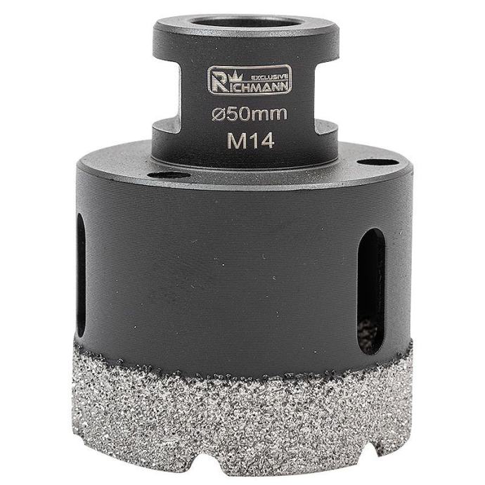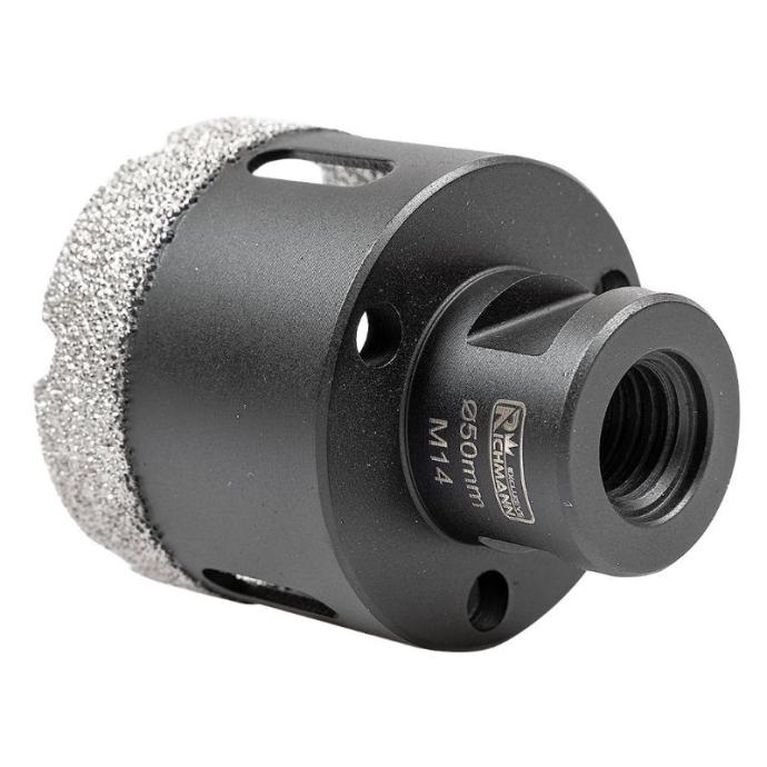 veličina: 50mmradna dužina 40 mmukupna dužina 60 mmnavoj M14radna brzina: 10000-14000 o/minopremljen ručkom s navojem M14 za izravnu montažu na kutnu bušilicunamijenjen za bušenje rupa, između ostalog u kamenoj, porculanskoj, keramici, crijepu, prirodnom kamenu, granitu i mramorusvrdlo pakirana u plastičnu cijev s rupom za vješanje na nosač tj kukumaksimalna radna brzina je 14.000 o/minbočne rupe omogućuju bolje hlađenje i omogućuju uklanjanje krhotina nakon bušenja svake rupetrajnost svrdla za rupe ovisi o vrsti materijala koji se obrađuje, njegovoj debljini te odgovarajućem hlađenju i uporabi.kako bi se produžio njegov vijek trajanja, potrebno je pridržavati se sljedećih pravila:koristi se s uređajima koji osiguravaju odgovarajuću radnu brzinusvrdlo za suhe rupe, stoga NEMOJTE koristiti vodu kao rashladno sredstvopočnite bušiti rupe postavljanjem krunice pod kutom od oko 30 stupnjeva u odnosu na materijal koji se obrađuje i zatim kružnim pokretimakao što je prikazano na ilustrativnoj fotografiji u galerijiprije svakog sljedećeg bušenja provjerite i očistite središte krunicetežina s pakiranjem: 194 g]]>