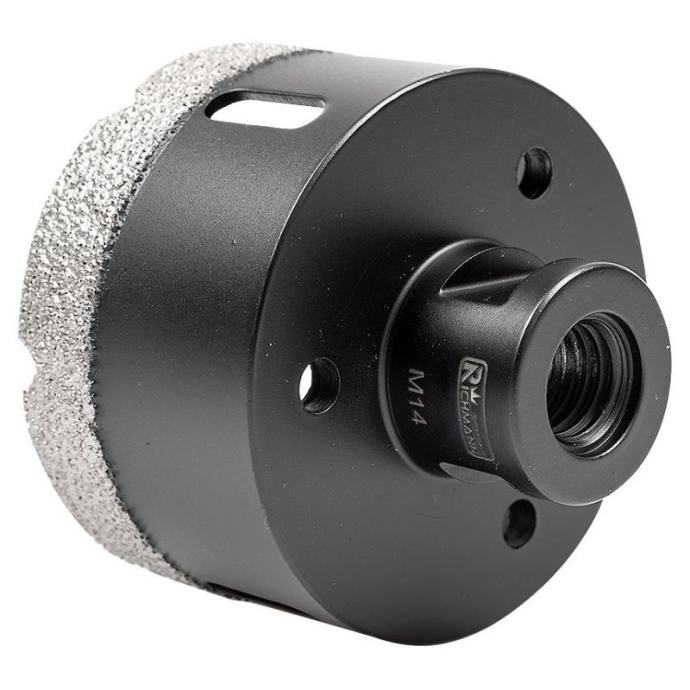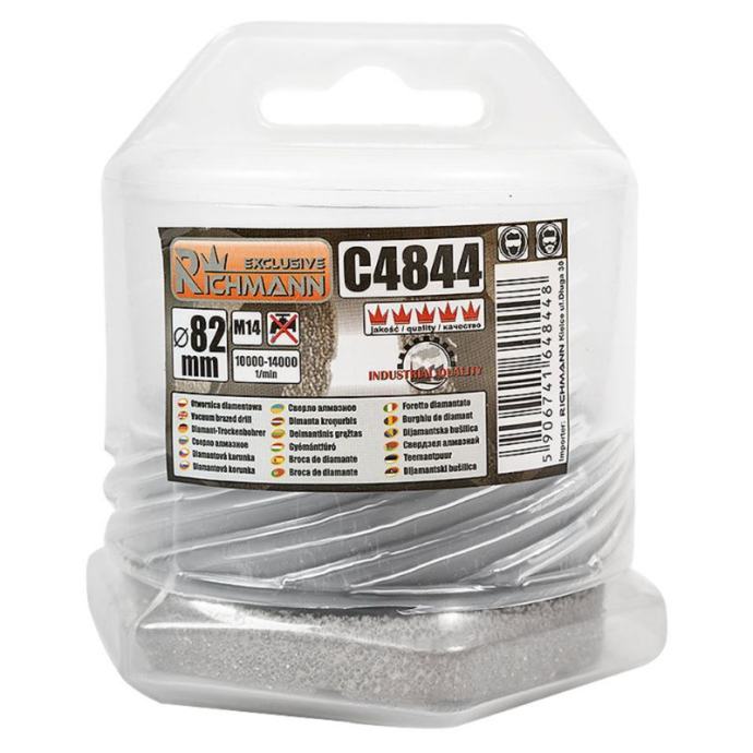 veličina: 82mmradna dužina 40 mmukupna dužina 60 mmnavoj M14radna brzina: 10000-14000 o/minopremljen ručkom s navojem M14 za izravnu montažu na kutnu bušilicunamijenjen za bušenje rupa, između ostalog u kamenoj, porculanskoj, keramici, crijepu, prirodnom kamenu, granitu i mramorusvrdlo pakirana u plastičnu cijev s rupom za vješanje na nosač tj kukumaksimalna radna brzina je 14.000 o/minbočne rupe omogućuju bolje hlađenje i omogućuju uklanjanje krhotina nakon bušenja svake rupetrajnost svrdla za rupe ovisi o vrsti materijala koji se obrađuje, njegovoj debljini te odgovarajućem hlađenju i uporabi.kako bi se produžio njegov vijek trajanja, potrebno je pridržavati se sljedećih pravila:koristi se s uređajima koji osiguravaju odgovarajuću radnu brzinusvrdlo za suhe rupe, stoga NEMOJTE koristiti vodu kao rashladno sredstvopočnite bušiti rupe postavljanjem krunice pod kutom od oko 30 stupnjeva u odnosu na materijal koji se obrađuje i zatim kružnim pokretimakao što je prikazano na ilustrativnoj fotografiji u galerijiprije svakog sljedećeg bušenja provjerite i očistite središte krunicetežina s pakiranjem: 407 g]]>