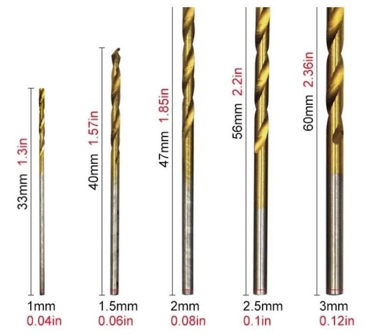 Svrdlo HSS Set 100 komada 1mm 1.5mm 2mm 2.5mm 3mm Titanium