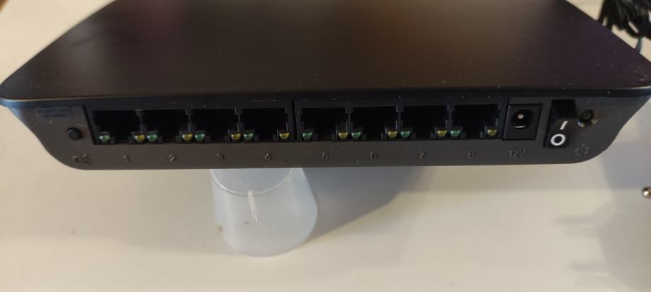 Kvalitetni 8 portni preklopnik, poznatog proizvođača Linksys / Cisco, omogućuje jednostavno priključivanje više računala u mrežu. Ima osam priključaka 10/100/1000 Mb/s RJ-45..