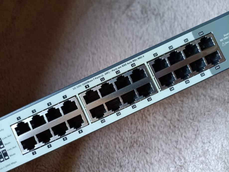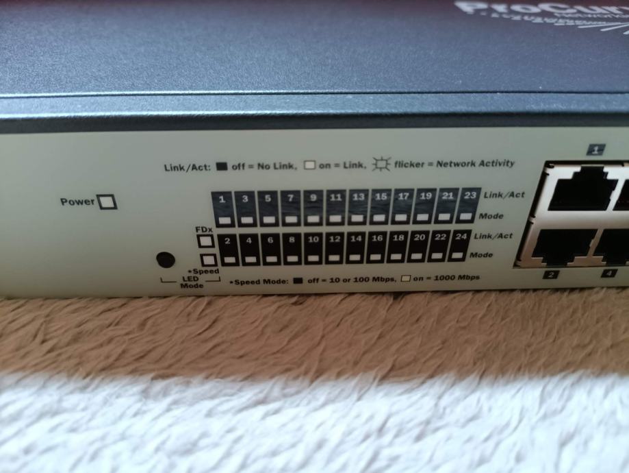 Unmanaged switch iz 2007, otpisan 2020 i testiran, pasivno hlađenje, LED-ice na određenim LAN portovima izblijedile od rada ali potpuno funkcionalne, radi na 100-240V, s njim dolazi 1x HPE 1Gb SFP na RJ45, sve ispravno.