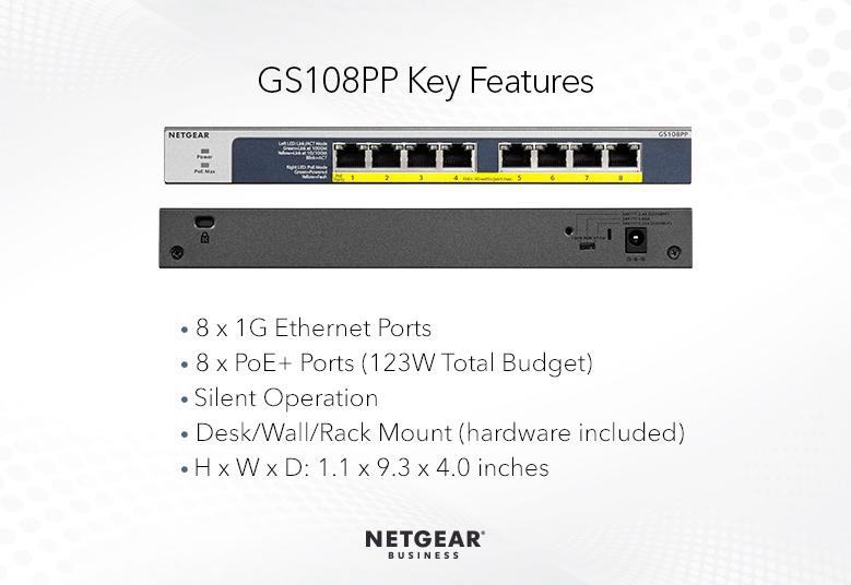 NETGEAR GS108PP PoE+ Unmanaged Switch 30W/port