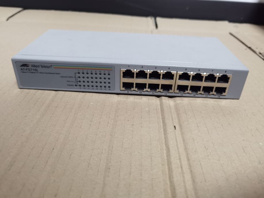 Mrežni switch AT-FS716L-50, 16x 10/100Mbps, desktop (mogućnost ugradnje u ormar), fiksna konfiguracija, 1U, unamanaged, Layer 2, Napajanje unutarnje