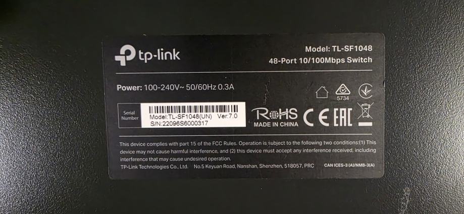 - TP-Link TL-SF1048 48-Port 10/100 Switch