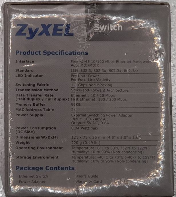 Prodajem ZyXEL ES-105A v2, **nekorišteni i potpuno neraspakirani 5-portni mrežni switch (unmanaged).